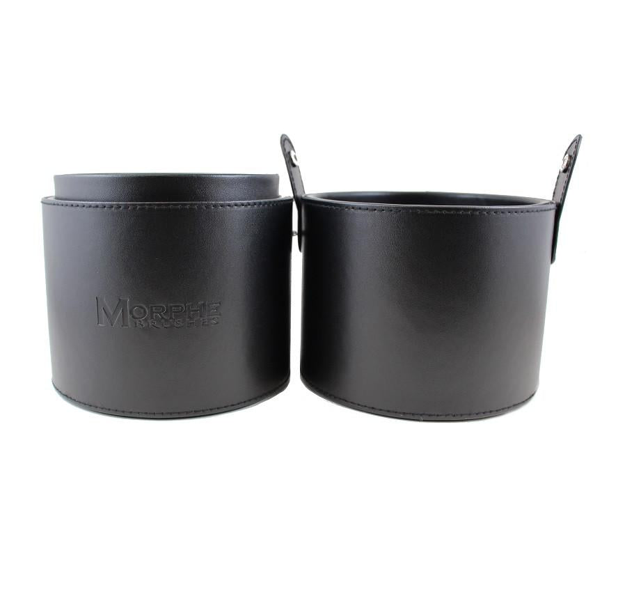 This stylish mega-sized case is big enough to keep even a large brush collection with a soft and sturdy faux leather covering that maintains its shape and is great for travel. The top snaps on and off easily and keeps the brushes in pristine shape and ready for use.